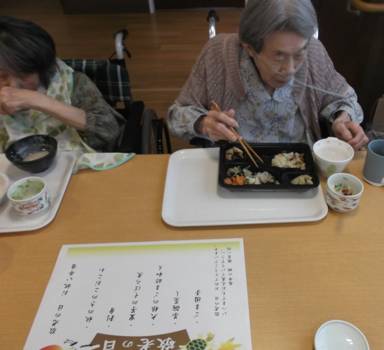 9月15日に敬老会を行いました💝昼食にはお祝い弁当を食べて頂きました🍱
