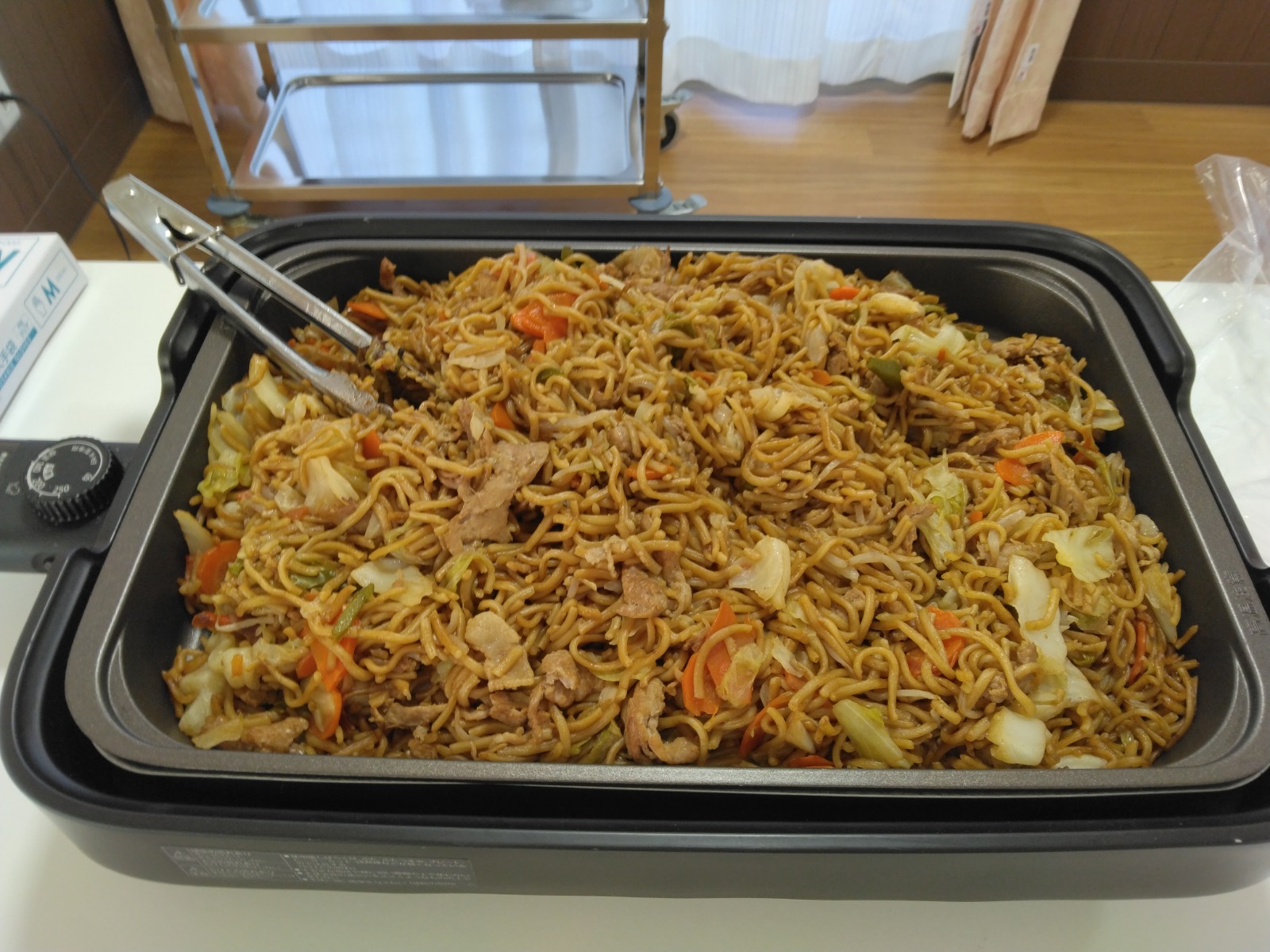 ご飯は、屋台で好きなものを選んでもらいました!焼きそばやおにぎり、たこ焼きなど、いつもと違った祭りらしいご飯を楽しんでもらいました🍙